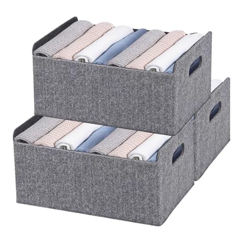 QUMENEY 3-pack korgar av filttyg förvaringslåda med handtag vikbara garderobskorgar förvaringskub för kläder leksaksförvaring för barnrum hemma, 31 × 25 × 15 cm (grå)