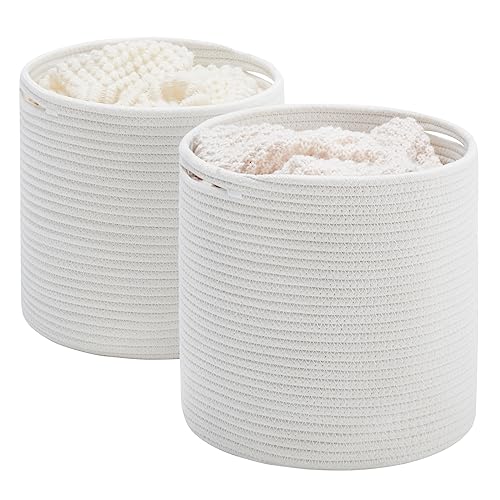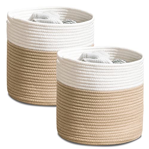 YOUDENOVA 2 st. flätade bomullskorgar, leksaksförvaring för barnrum, förvaringskorg, ytterkruka, för vardagsrum och sovrum, D 28 x H 28 cm, vit