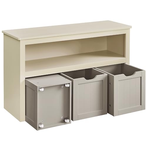 VASAGLE LHS380K01 Barnhylla, leksaksförvaring för barnrum, förvaringsskåp, leksaksskåp, med hjul, 30 x 102 x 60 cm, sandbeige