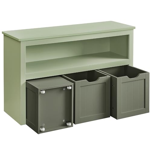 VASAGLE LHS380C02 Barnhylla, leksaksförvaring för barnrum, förvaringsskåp, leksaksskåp, med hjul, 30 x 102 x 60 cm, lagerbladsgrön