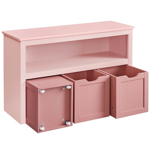 COSTWAY Leksakslåda med lock, 2-i-1 leksakslåda med kudde, leksaksskåp av trä med bärhandtag, leksaksförvaring för barnrum, lekrum, 74 x 39 x 52 cm (rosa)