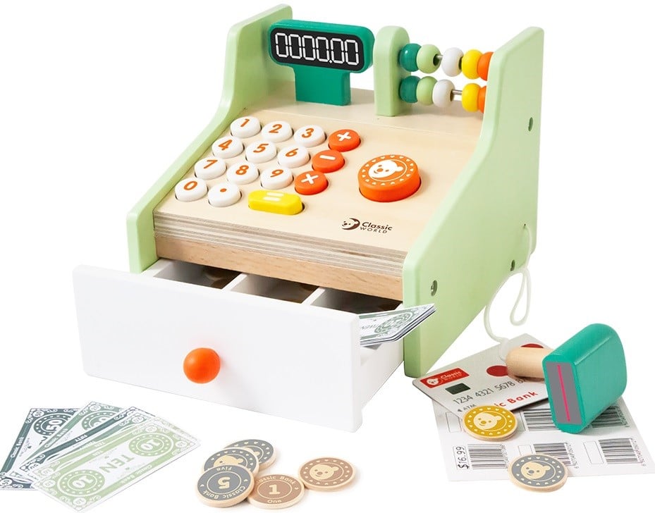 Classic World Leksakskassa med trätillbehör