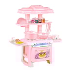 COSTWAY Barnkök, lekkök med ljus och ljud, träkök inkl. tillbehör, diskbänk, köksfläkt mikrovågsugn, ismaskin, tavla, leksakskök för barn från 3 år (normal)