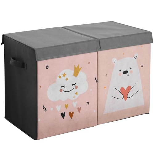 Navaris Leksakslåda med lock – 62 x 33 x 40 cm – förvaringslåda för barnrum – förvaringslåda leksak – rosa med sött tryck