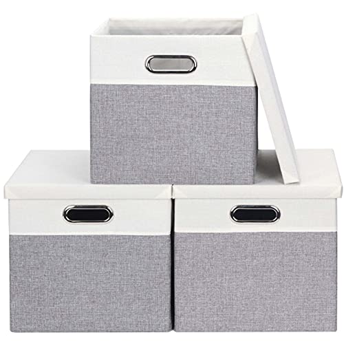 Yawinhe Förvaringslåda med lock 3-pack, hopfällbar klädhylla korg leksakslåda, för att organisera kläder, 45x30x30 cm, Grå, SNK023GX-3