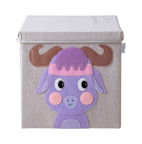 LIFENEY Förvaringslåda med lock och buffel I leksakslåda med djurmotiv lämplig för kubhyllor I förvaringslåda för barnrummet I förvaringskorg barn