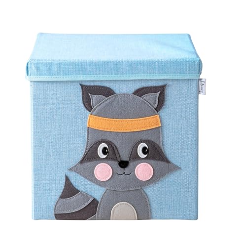LIFENEY Förvaringslåda med lock och tvättbjörn I leksakslåda med djurmotiv lämplig för kubhyllor I förvaringslåda för barnrummet I förvaringskorg barn
