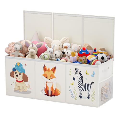 Restorgan Extra stor leksakslåda förvaring – hopfällbar robust leksaksförvaring med lock, söt leksak kista organiserare för pojkar flickor, stor barn leksakslåda fack för lekrum, sovrum, barnkammare