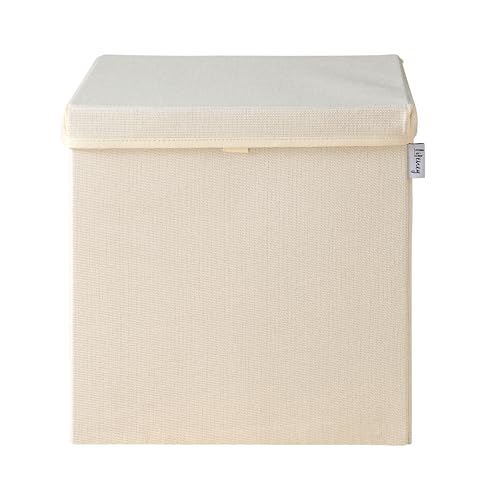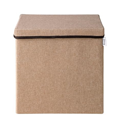 Lifeney Beige förvaringslåda med lock I Vikbar leksakslåda lämplig för Ikea Kallax-hyllor, förvaringslåda för barnrum