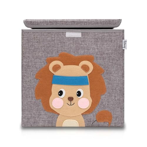 LIFENEY Förvaringslåda med lock och lejon I leksakslåda med djurmotiv lämplig för kubhyllor I förvaringslåda för barnrummet I förvaringskorg barn