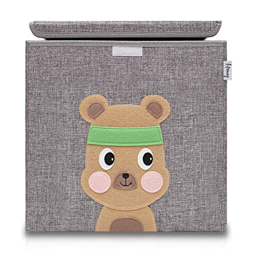 LIFENEY Förvaringslåda med lock och björn I leksakslåda med djurmotiv lämplig för kubhyllor I förvaringslåda för barnrummet I förvaringskorg barn
