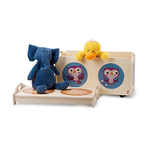 Dida - Leksakslåda för barnrum - "Pancotti" stapelbar behållare med 4 hjul och lock - dekoration: kaniner, igelkottar och ugglor