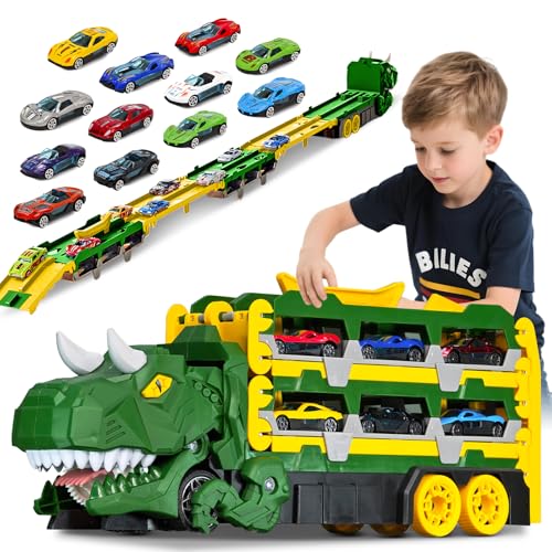 Sternstunde Dinosaurie Leksakslastbil, Transport Lastbil Leksaksbilar Med 12 Racerbilar, BäRbar Racerbana Lastbil Leksaksbil, FöR Pojkar I åLdern 3, 4, 5, 6 åR Gamla Barn Pojkar (GröN)