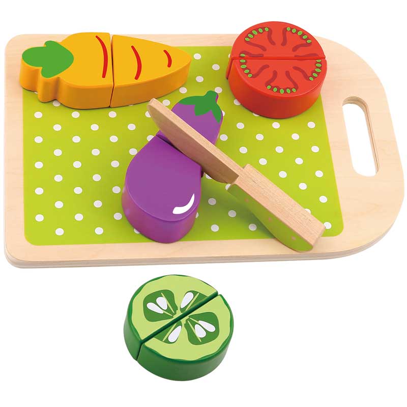 Leksaksmat i trä - grönsaker med skärbräda och kniv