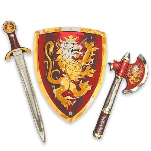 Liontouch - Ädla Riddare Leksakssvärd, Sköld & Yxa för Barn, Röd | Medeltida Lekset i Skum för Barn med Gyllene Lejon Tema | Säkra Vapen & Stridsrustning för Utklädnad & Kostymer