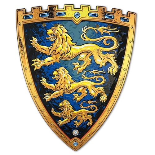 Liontouch Ädla Riddare Leksakssvärd- & Sköld, Blå Medeltida Lekset i Skum med Gyllene Lejon-tema Säkra Vapen & Stridsrustning för Utklädnad