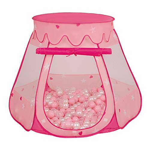 Selonis Lektält, 105 x 90 cm/200 bollar, slott, hus, pop-up, bollhav, plastbollar för barn, rosa: babyblå-puderrosa pärla