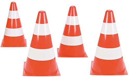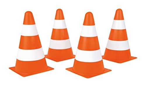Lena 61249 pyloner set om 4, trafikkök, lekset med 4 pyloner, varningskoner vardera 22 cm, trafikkoner orange och vit, varningsledkon stapelbar, trafikledstång, komplett set för barn från 2 år