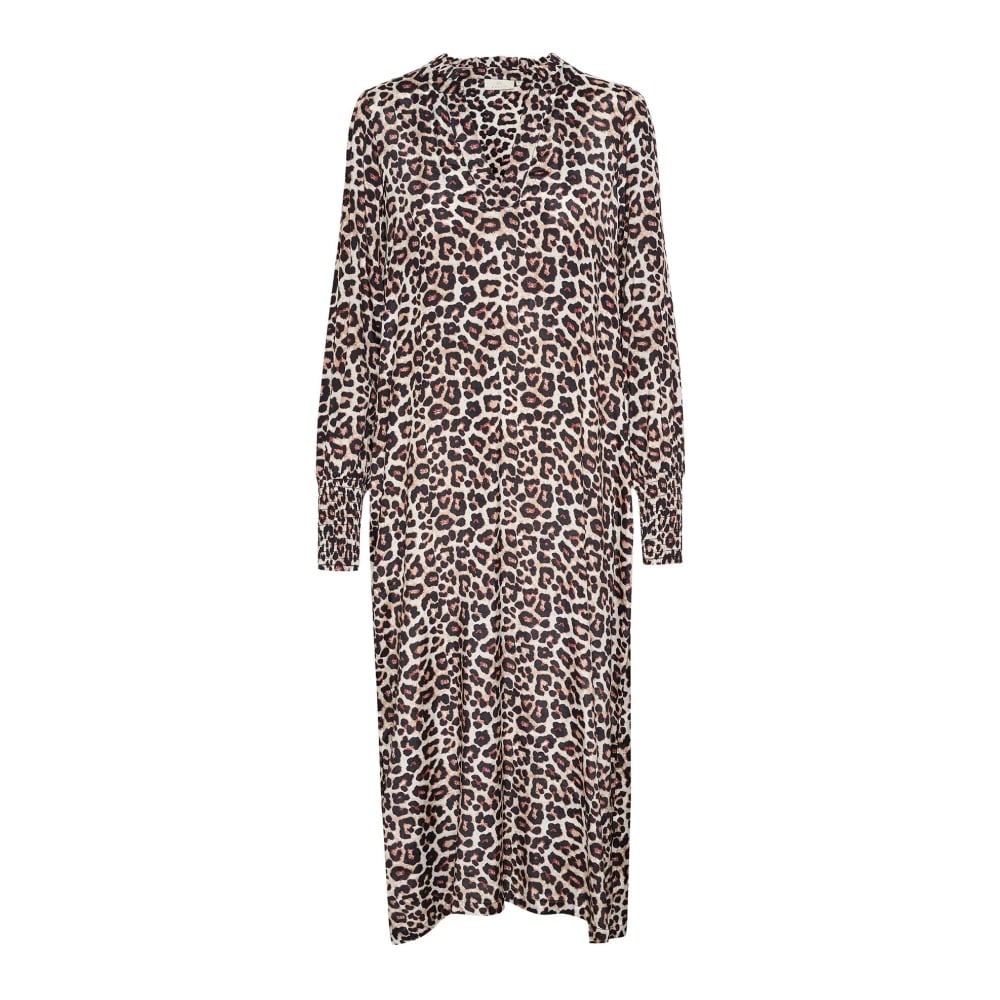 Kaffe, Klänningar , Dam, S, Fjädergrå Leo Print Klänning Kadrylia