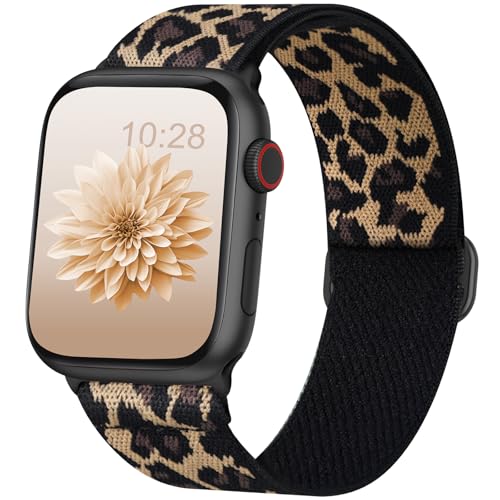 AMSKY Elastiskt nylonarmband kompatibelt med Apple Watch-armband 40 mm 44 mm 46 mm 42 mm 41 mm 45 mm 38 mm 49 mm dam herr, unikt spänne för iWatch SE Ultra serie 10 9 8 7 6 5 4 3 2 1, leopard