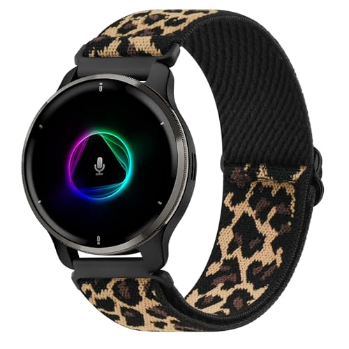 Oumida Armband för Garmin Venu 2 Plus/Venu Sq/Venu Sq 2 musik för kvinnor och män, 20 mm klockarmband i nylon elastiskt justerbart sport ersättningsband för Garmin Venu Sq 2 armband, leopard