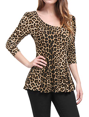 Allegra K Kvinnor Halloween Kostym Leopard Tryck Långärmad Scoop Nacke Djur Blus Topp