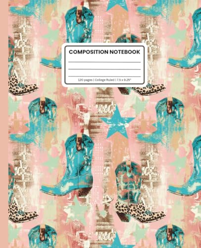 Composition Notebook College Ruled: Turquoise & Leopard Cowgirl Boot Pattern: Western Grunge Aesthetic Journal for School, Work & Creative Writing