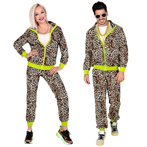 W WIDMANN MILANO Party Fashion – Kostym 80-tals träningsoverall, leopard, jacka och byxor, joggingdräkt, retrostil, badknappfest, temafest, karneval