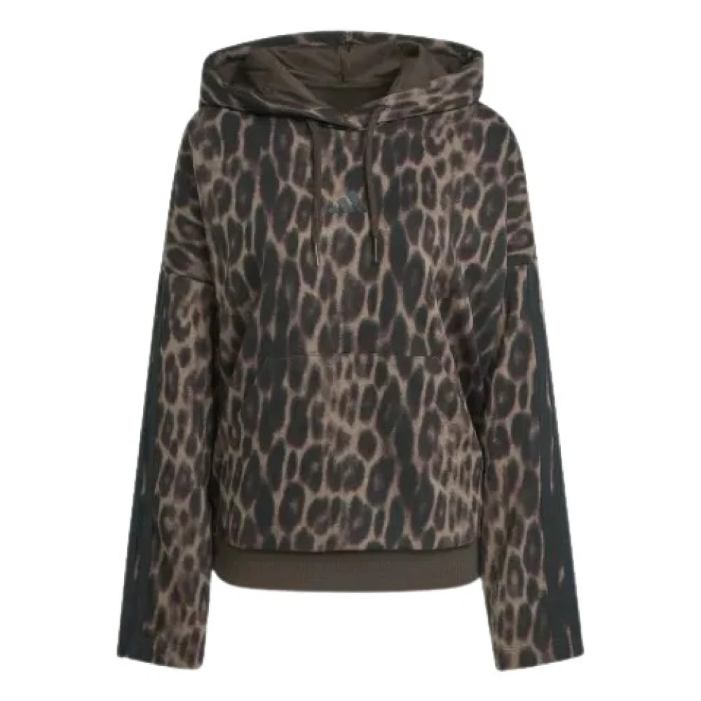 Adidas Seasonal Essentials Leopard Print French Terry 3 Stripes Hoodie Brun M Kvinna