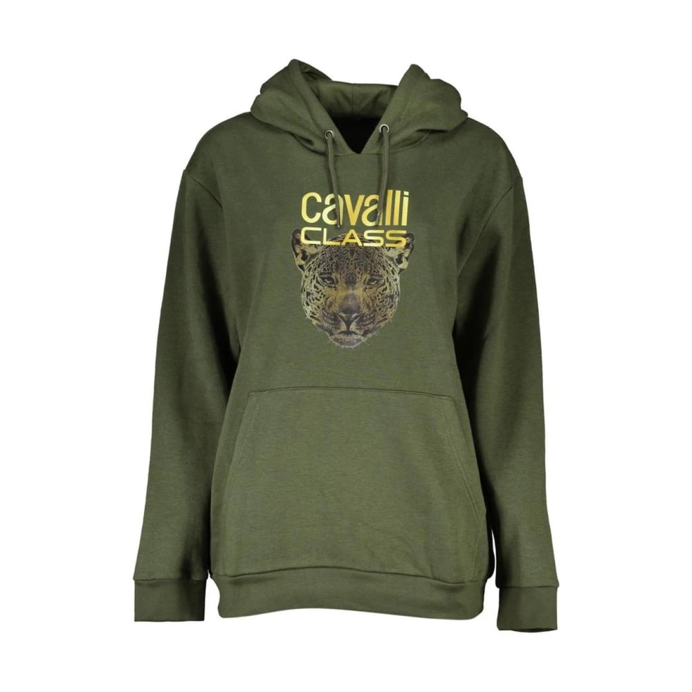 Cavalli Class, Sweatshirts & Hoodies , Dam, L, Bomull, Leopard Print Hoodie i Militärgrön