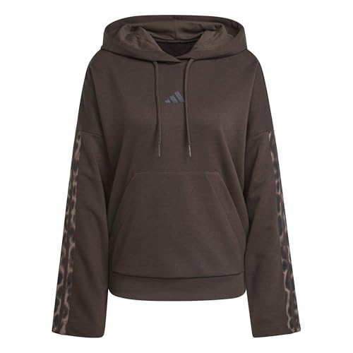 adidas Kobiety Seasonal Essentials Leopard Print French Terry Hoodie with 3-Stripes, Aurora Coffee/MULTICOLOR, L