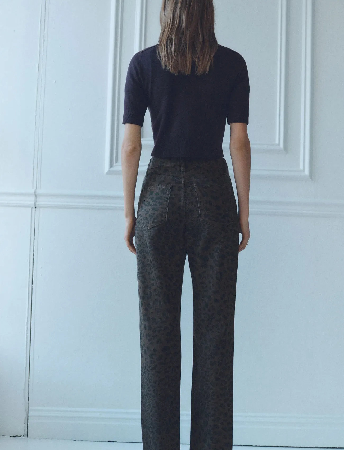 Mango Leopard-Print Straight Jeans - Brown - 3-4