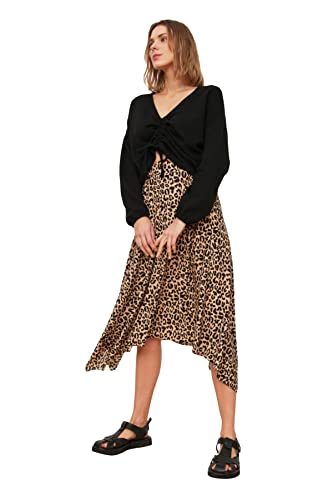 Trendyol Dam brun leopard mönster asymmetrisk stickad kjol, S