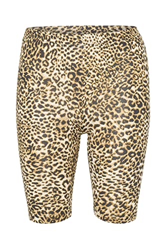 Kaffe dam biker jersey shorts leggings tryck, klassisk sand/svart leopard, XL