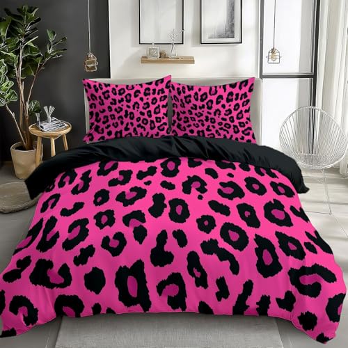 A Nice Night Leopard tryckt, satin silkeslent mjukt täcke sexigt lyxigt supermjukt mikrofiber täcke sängkläder täcke set full/drottning, lätt vikt (rosa, queen, 223 x 223 cm).