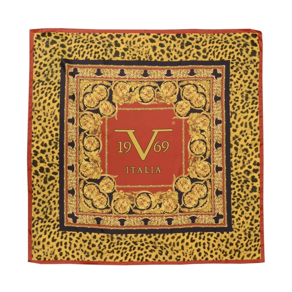 19v69 Italia, Accessoarer , Dam, ONE Size, Polyester, Leopard Print Silk Scarf Baroque Frame