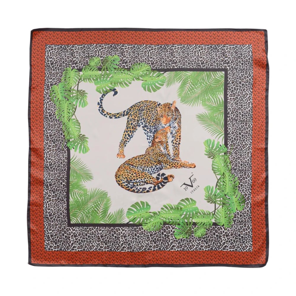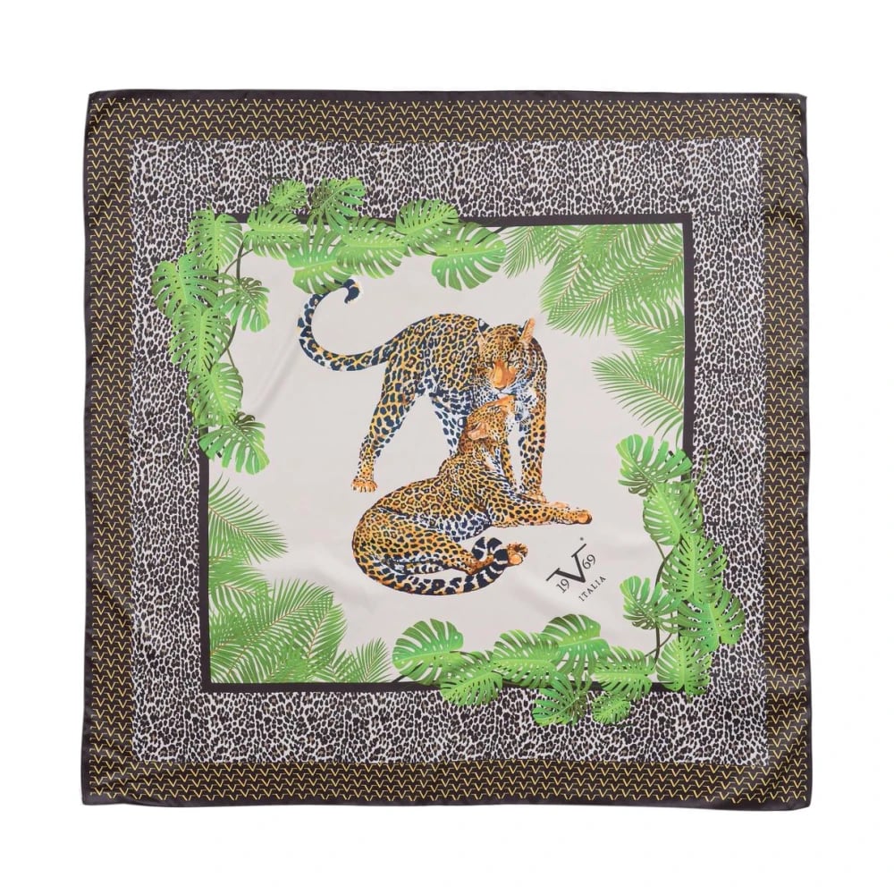 19v69 Italia, Accessoarer , Dam, ONE Size, Polyester, Leopard Palm Print Silk Scarf
