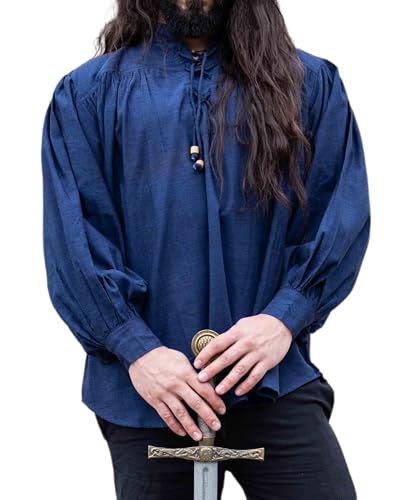 Leonardo Carbone® medeltida skjorta leopard – medeltida kläder män, medeltida skjorta, LARP-kläder, festivaloutfit, karnevalkostym, fritidsskjorta långärmad – 100 % bomull, blå, XXL