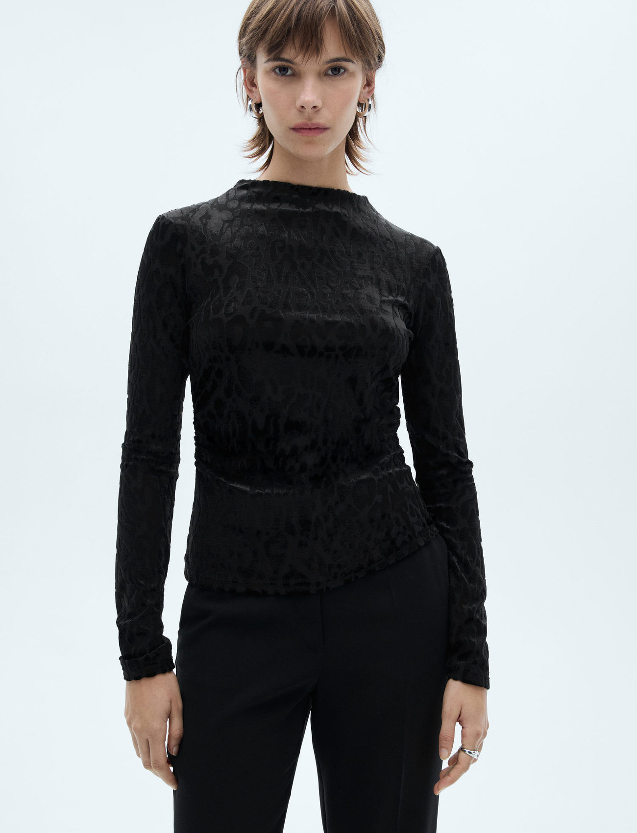 Mango Leopard-Print Long-Sleeved T-Shirt - Black - S