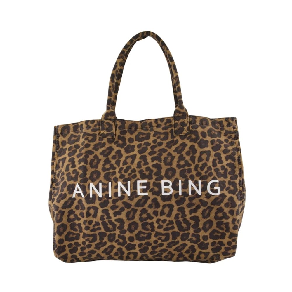 Anine Bing, Väskor , Dam, ONE Size, Bomull, Svart bomullsshopper väska med leopard