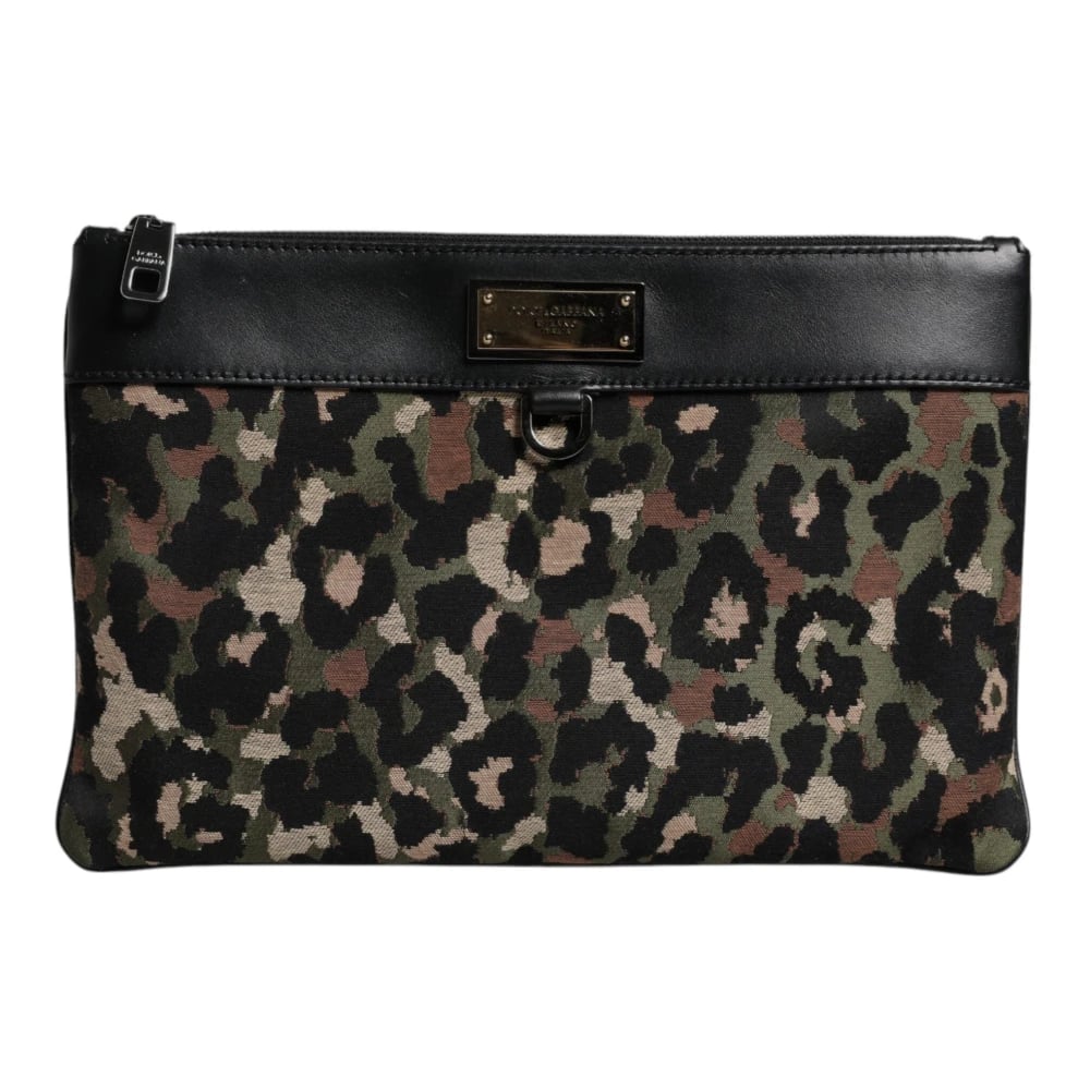Dolce & Gabbana, Väskor, Herr, ONE Size, Bomull, Leopard Jacquard Print Logo Plaque Pouch Bag
