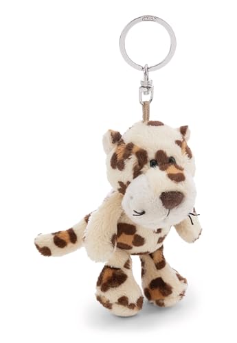 Nyckelring, Leopard, 10 cm, beige, trogen plyschkompis för ryggsäck eller väska, nyckelhållare för både små och stora | 62396
