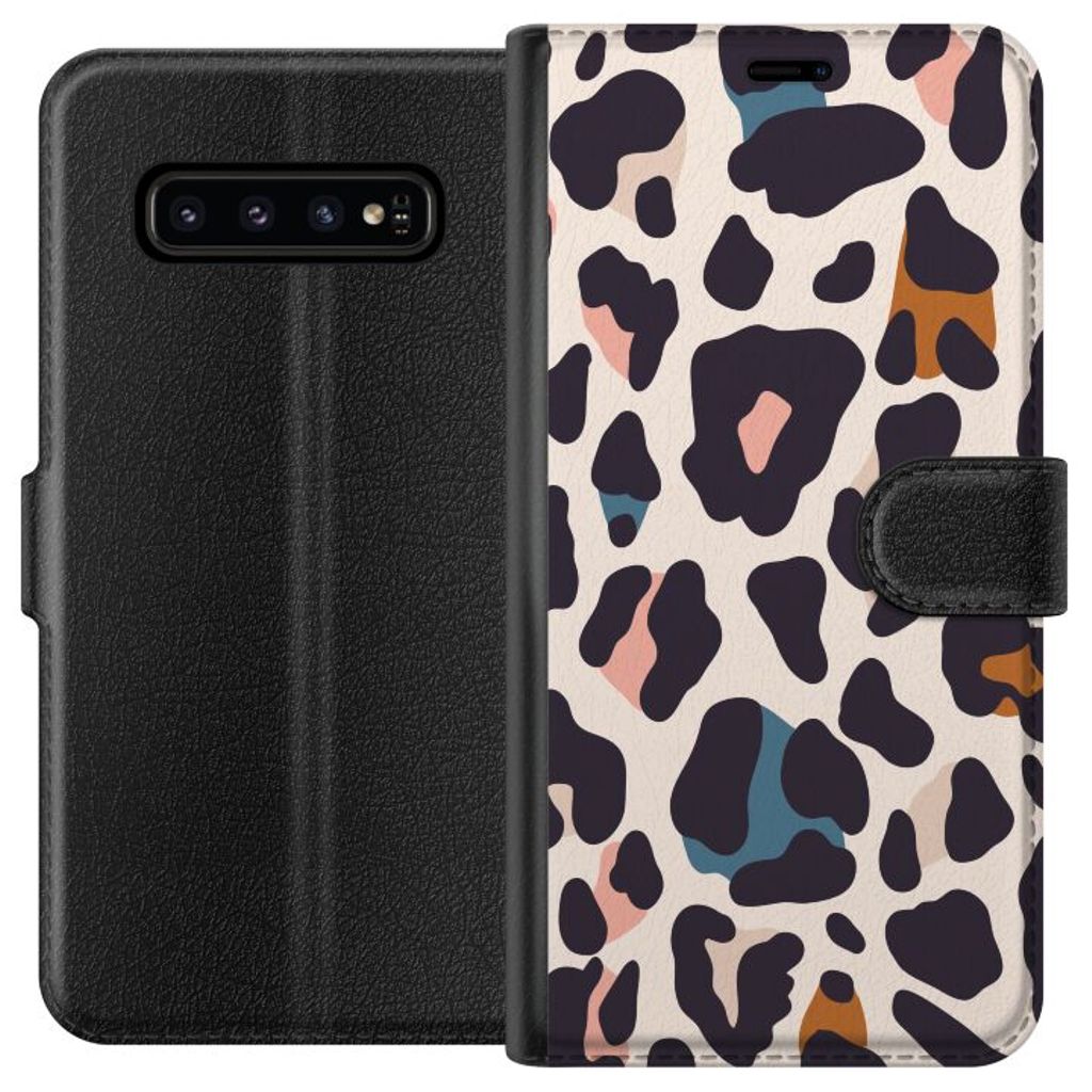 Samsung Galaxy S10 Svart Plånboksfodral Leopardmönster