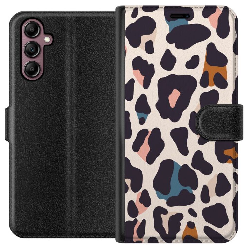 Samsung Galaxy A14 5G Svart Plånboksfodral Leopardmönster