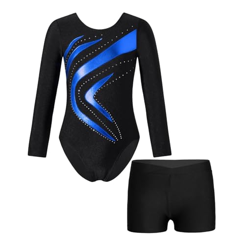 Gymnastik trikåer Barn Patchwork Gymnastik Leotard Body Långärmad Danskläder Set Balettoutfit for flickor Barn Konståkning Jumpsuit Danskläder(Royal Blue,10)