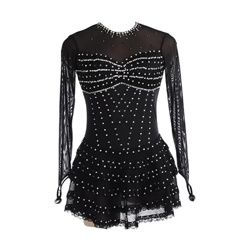 Oyolan Barn Flicka Konståkning Klänning Långärmad Strass Asymmetrisk Klänning Dans Leotard Gymatisk Show, b svart, 9-10 �r
