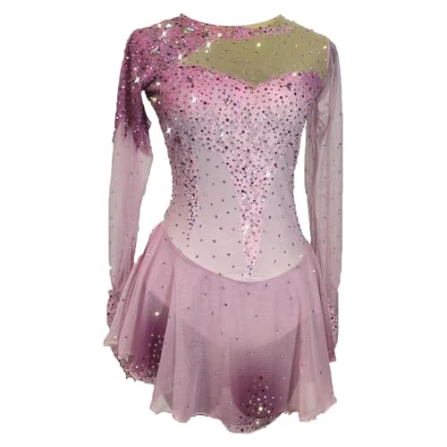 Professionell konståkningsklänning för barn Långärmad skridskoåkning för flickor Glänsande Crystal Balett Gymnastik Leotard Wear Hög elasticitet,Pink,M