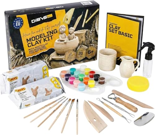 DIBYS Aardewerk-Set för Barn, Tonåringar & Vuxna | DIY Pottery Kit med Modelleringsverktyg, Lufthärdande Lera i Vitt, Färg & Penslar | Gör-Det-Själv Keramik-Set | Kreativa Hantverksgåvor