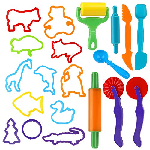 Spela doh formar verktyg för lera modelleringsdeg, 20 st Dough verktyg för lera kit leksaker tillbehör för barn djurform (slumpmässig färg)