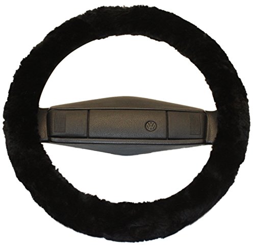 Reissner lammskinn | LERA-15-SCH | Rattskydd, rattskydd, rattskydd för bil och husbil | Äkta merino lammskinn | lugghöjd 15 mm | lämplig för ⌀ 40 cm | halkfri | färg svart